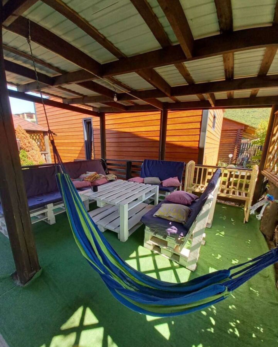 У домов мангал, садовая мебель. Вечером можно отдохнуть расслабиться и омолодиться в сибирском банном чане с аромаслами и травяными запарками за доп.плату.
